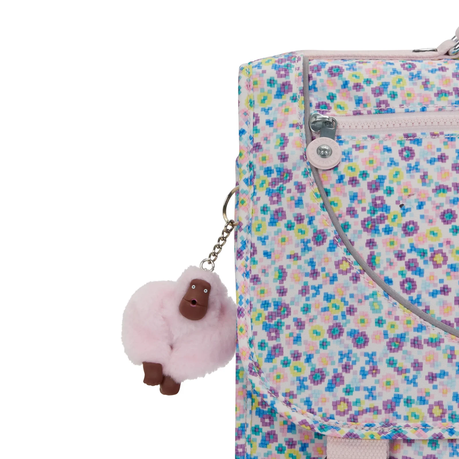 Logo emblématique : Présence du fameux singe Kipling, symbole de la marque, en porte-clés accroché à une bride ou sur le devant du sac.